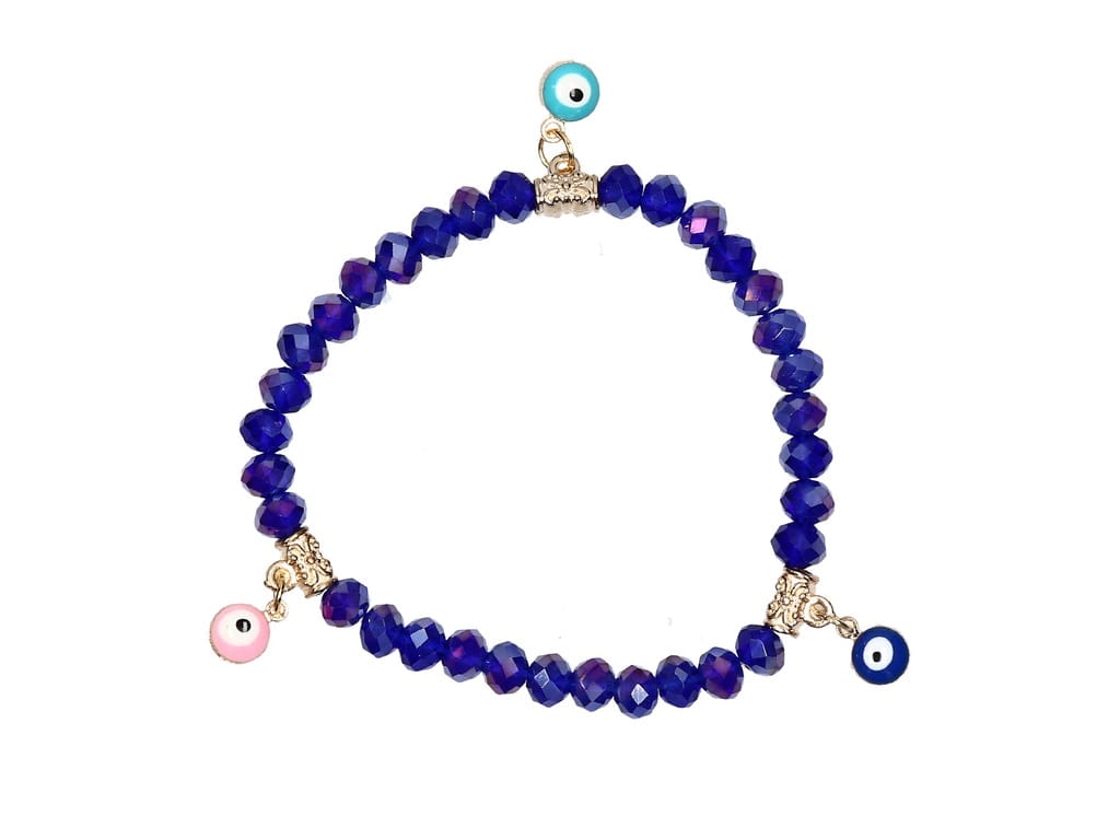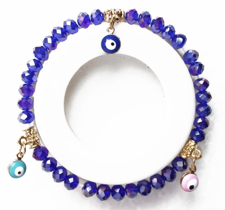 Przedmiotem aukcji jest doskonała na prezent, widoczna na zdjęciu turecka bransoletka z evil eye składająca się z niebieskich koralików, rozciągana - na gumce. Oko proroka według tradycji chronić ma przed urokiem oraz złym i zazdrosnym spojrzeniem.