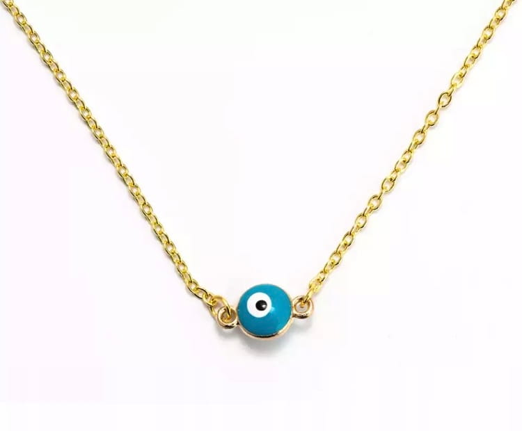 Przedmiotem aukcji jest doskonały na prezent, widoczny na zdjęciu pozłacany turecki łańcuszek z błękitno-turkusowym okiem proroka. Oko proroka według tradycji chronić mają przed urokiem oraz złym i zazdrosnym spojrzeniem.