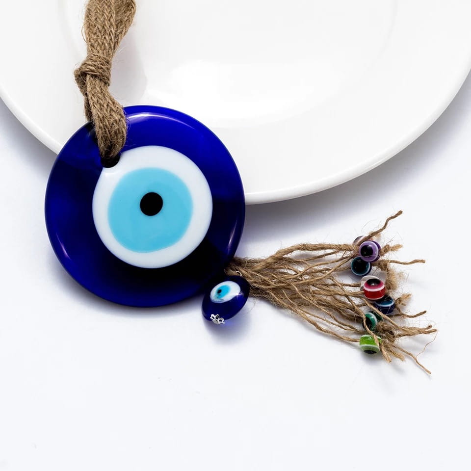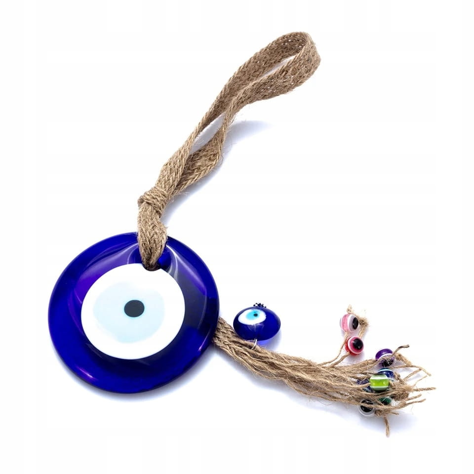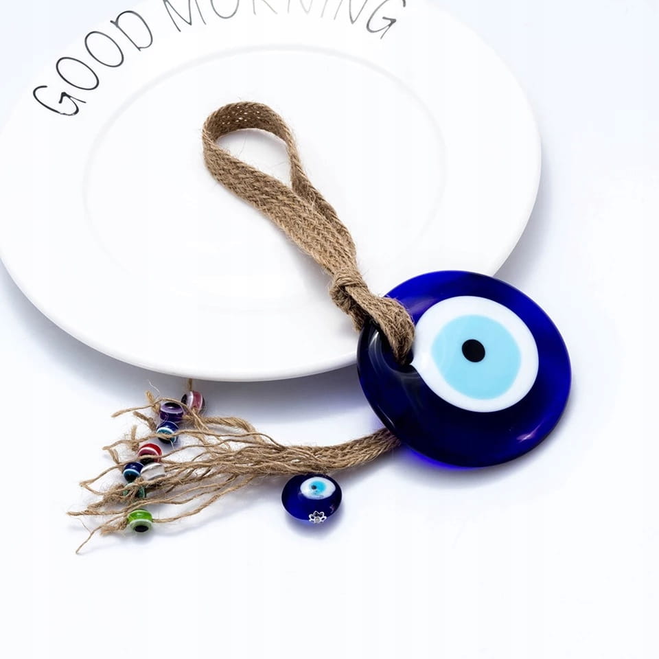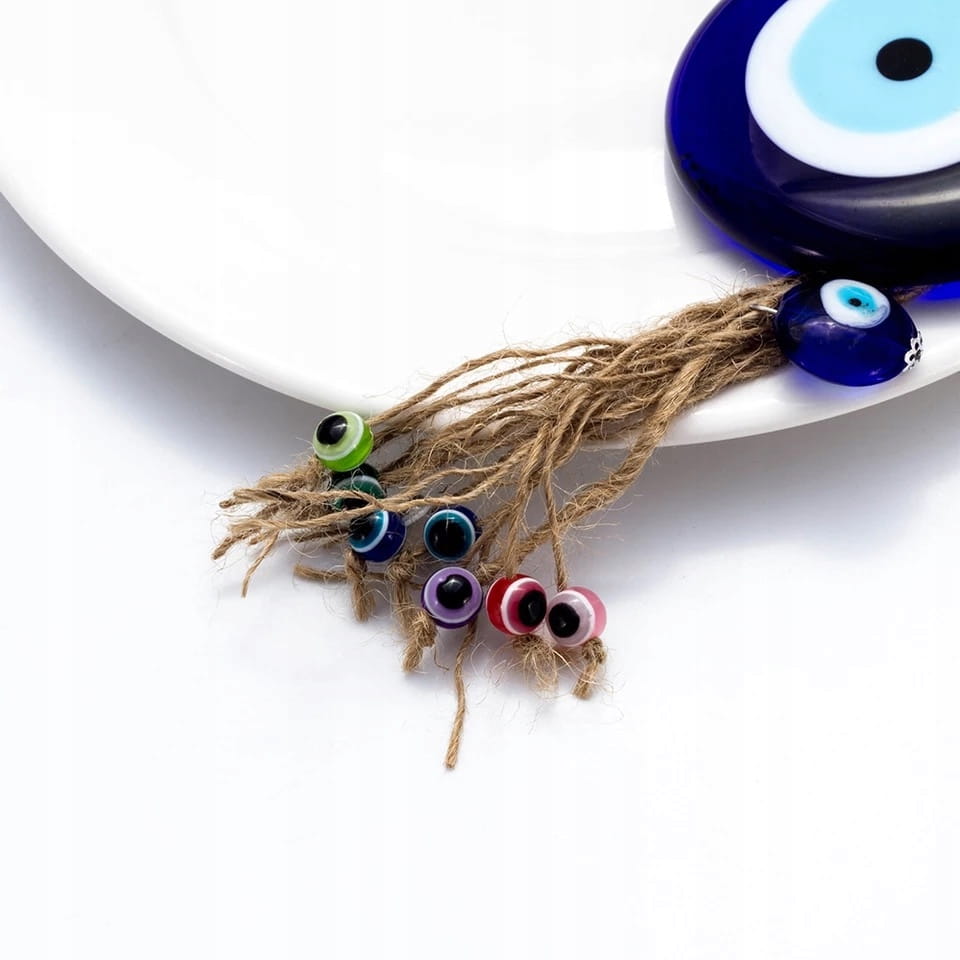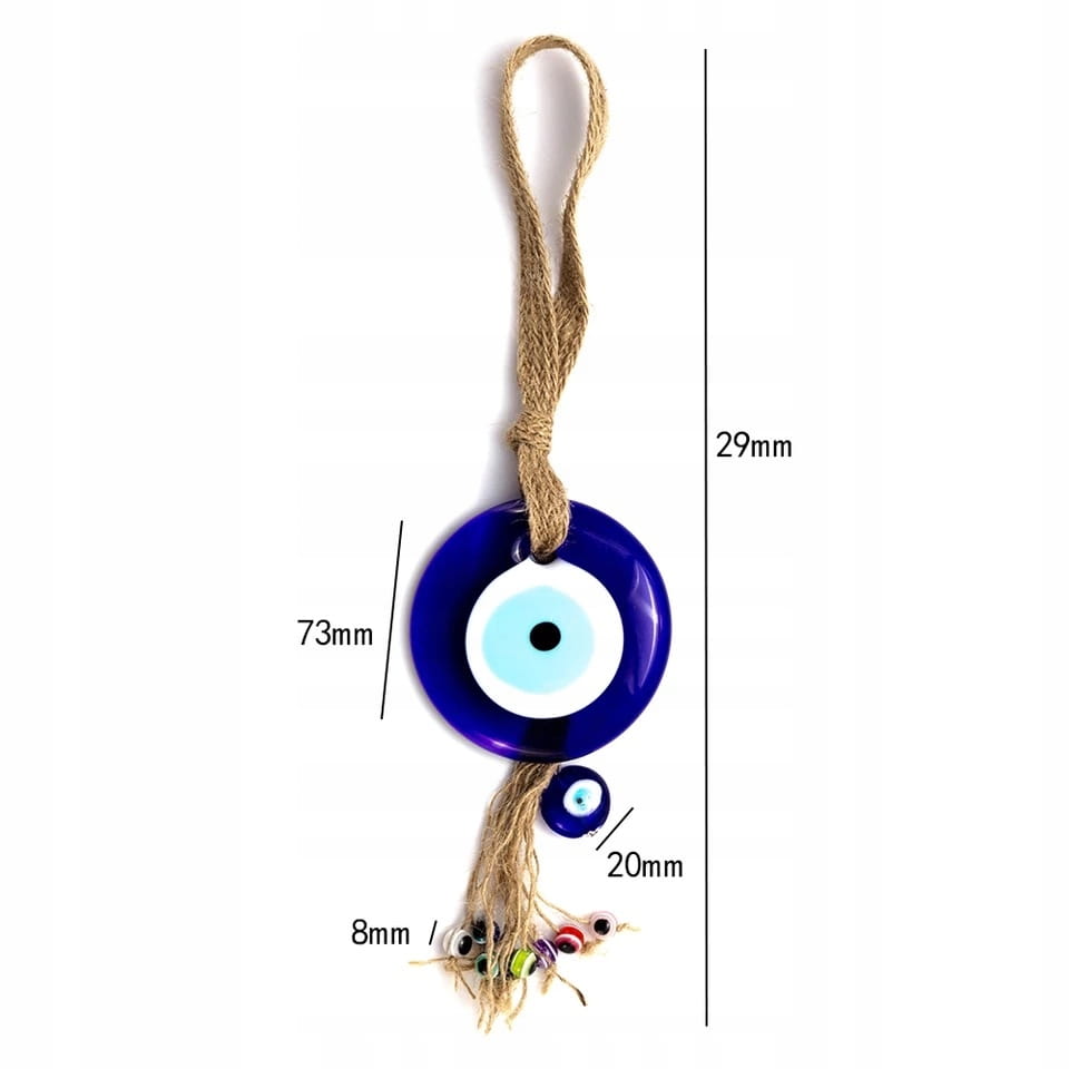 Doskonała na prezent wisząca ozdoba ze szklanym okiem proroka. Według tureckiej tradycji ludowej chronić ma przed złym i zazdrosnym spojrzeniem nieprzychylnych nam osób. Można zawiesić ją w dowolnym miejscu, na przykład na lusterku w samochodzie lub na ścianie.