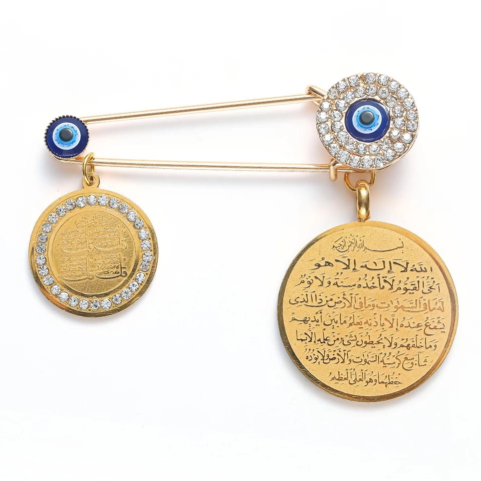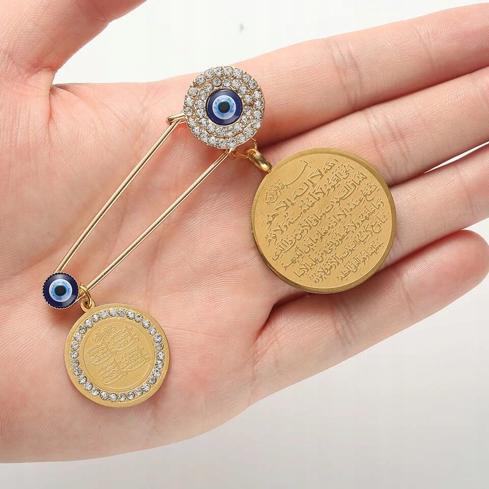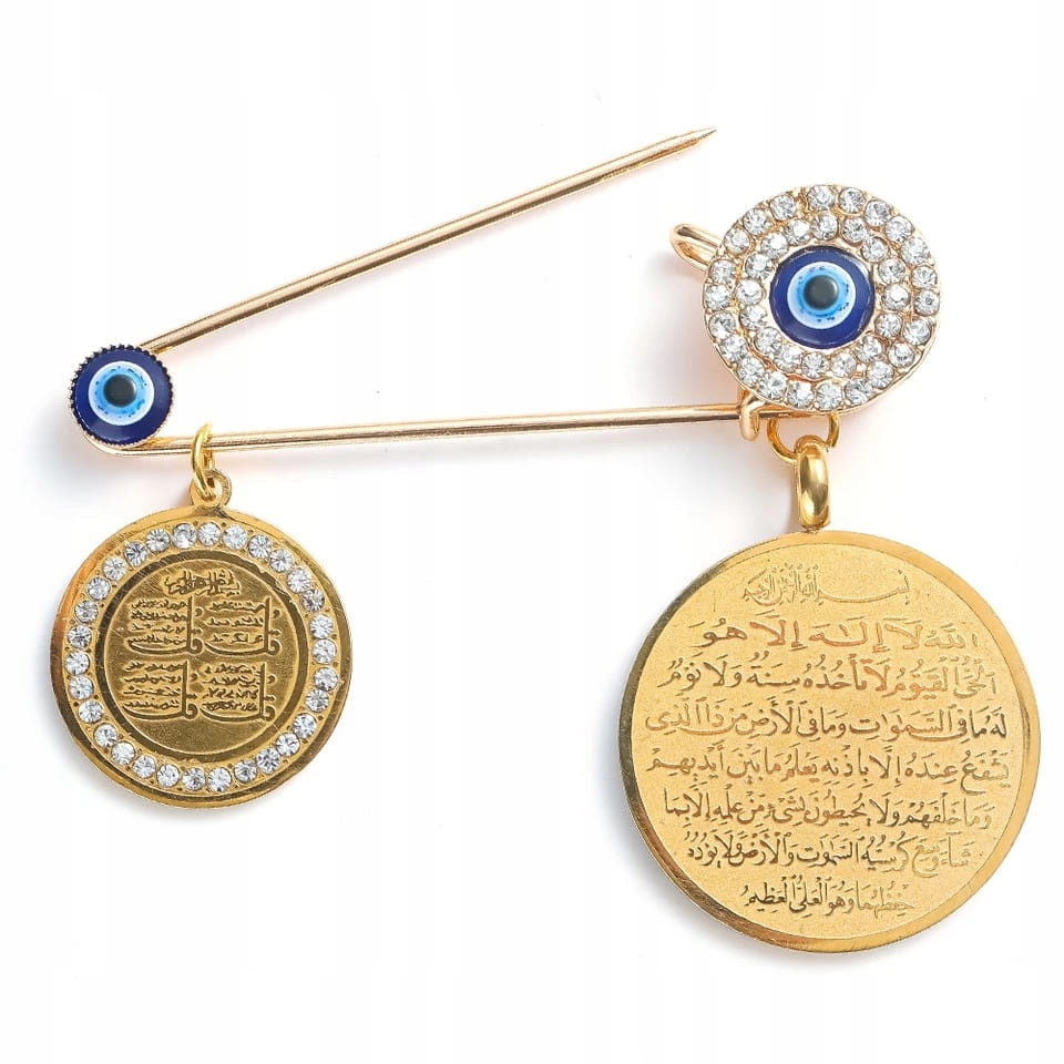Doskonała na prezent, widoczna na zdjęciu przypinka na agrafce z okiem proroka. Oko proroka według tradycji chronić ma przed urokiem oraz złym i zazdrosnym spojrzeniem.
