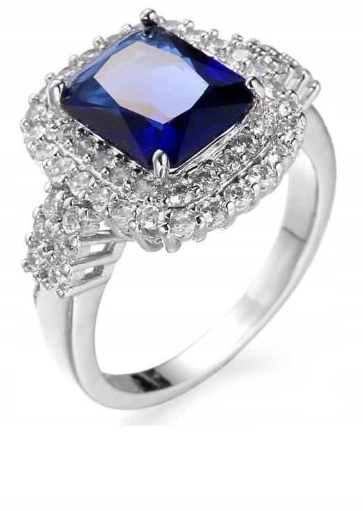 ✅Elegancki i niezwykle efektowny posrebrzany pierścionek z szafirowym kamieniem.