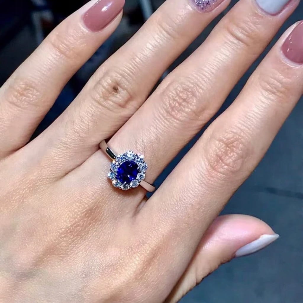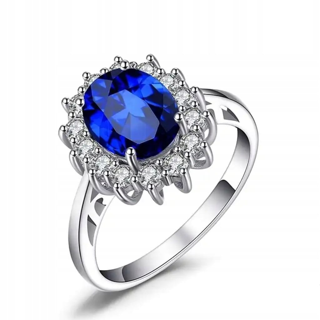 ✅Elegancki i niezwykle efektowny posrebrzany pierścionek z szafirowym kamieniem.
