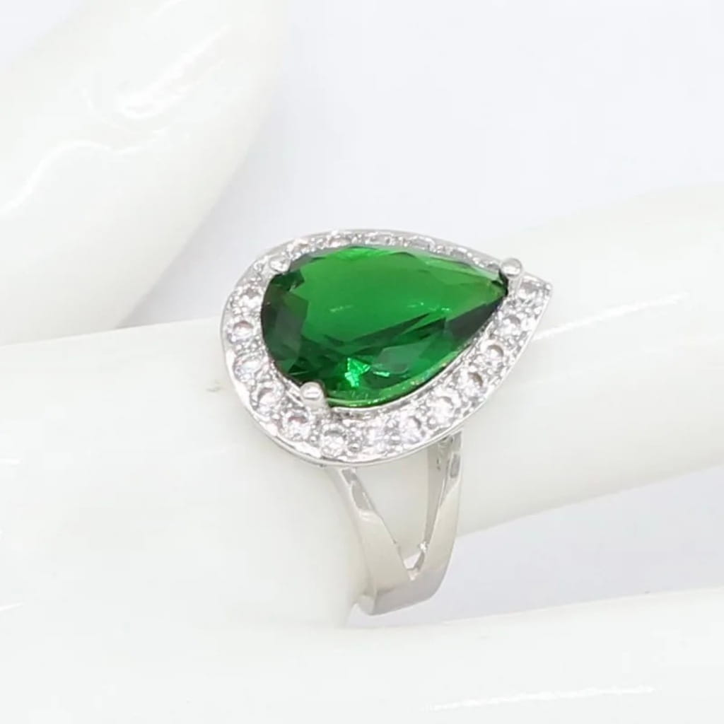 ✅Elegancki i niezwykle efektowny posrebrzany pierścionek z zielonym kamieniem.