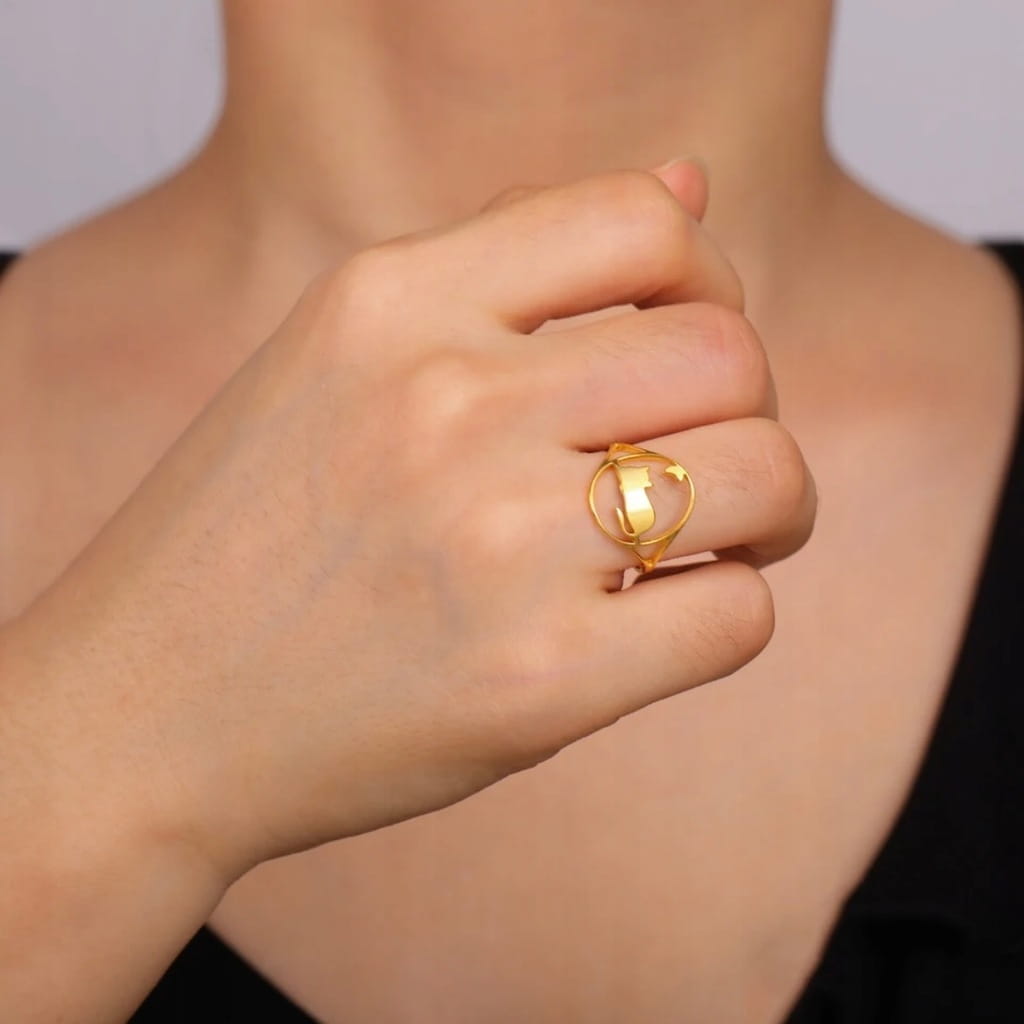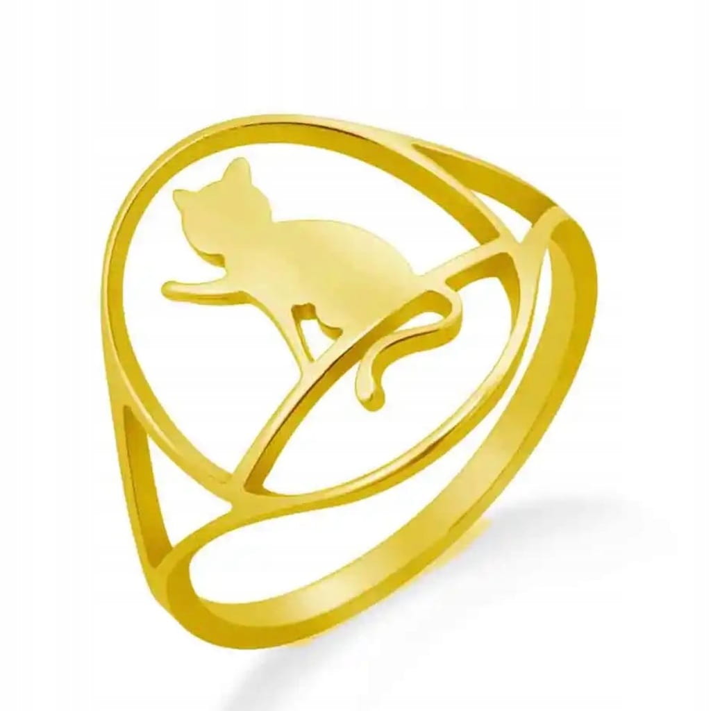 ✅Elegancki i delikatny pozłacany pierścionek z kotkiem.