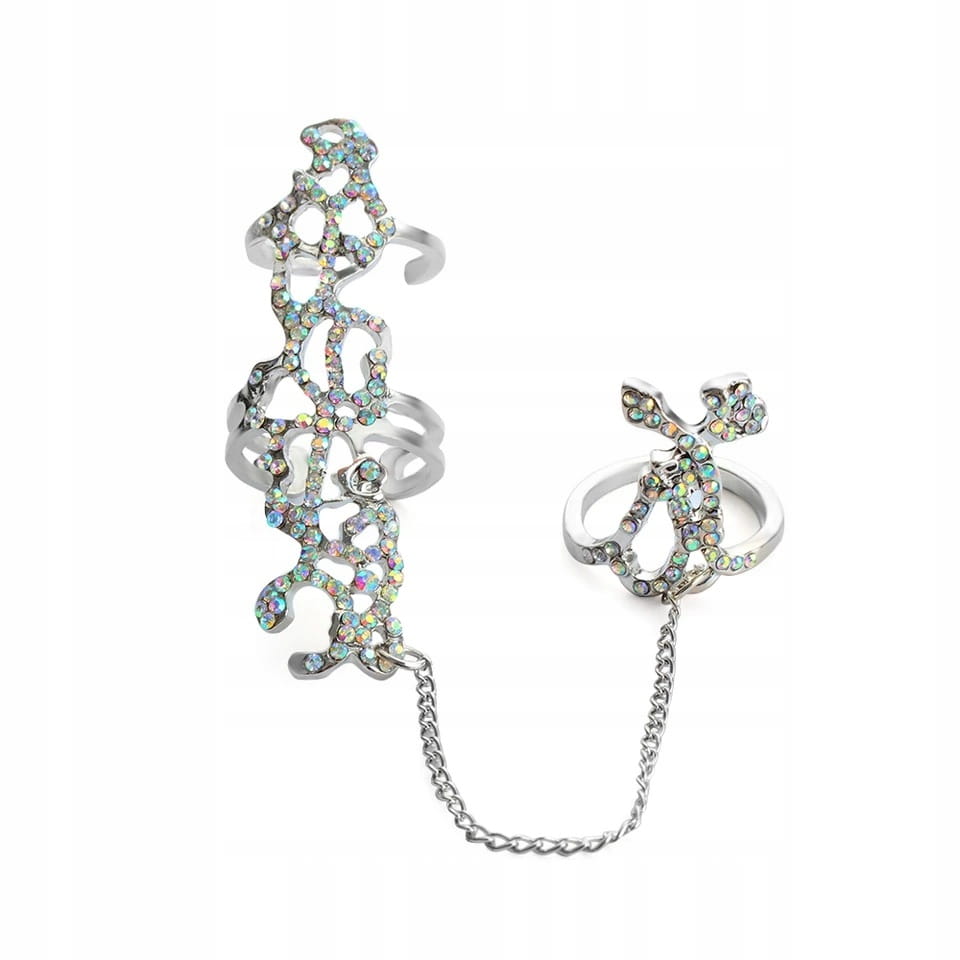 Pierścionek orientalny na dwa palce posrebrzany