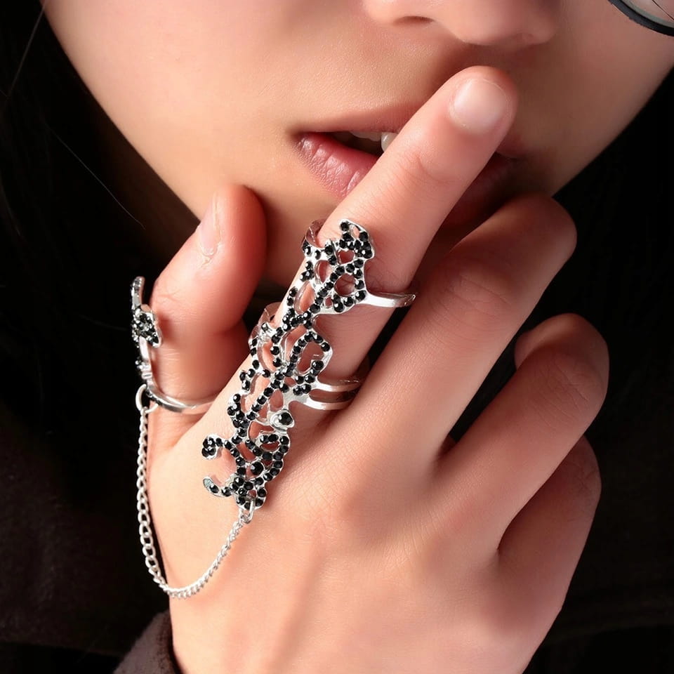 Pierścionek na dwa palce orientalny srebrny 13