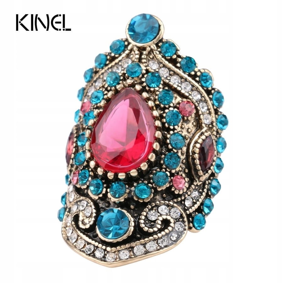 Doskonały na prezent, widoczny na zdjęciu elegancki pierścień damski z kamieniem i białymi kamyczkami przypominającymi cyrkonie. Pierścionek ma imitować pierścionki, które na planie serialu Wspaniałe Stulecie noszą sułtanki.