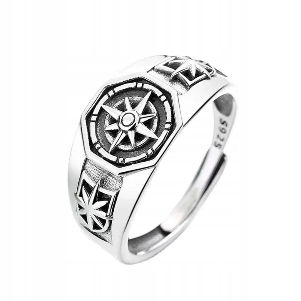 Pierścionek posrebrzany kompas róża wiatrów Posejdon prezent 75
