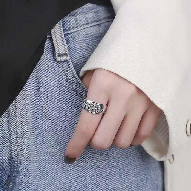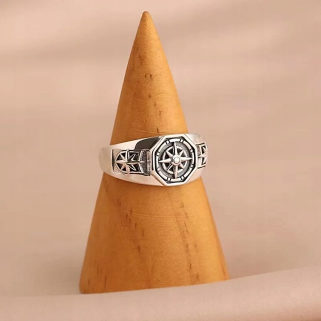 ✅ Posrebrzany pierścionek z kompasem.