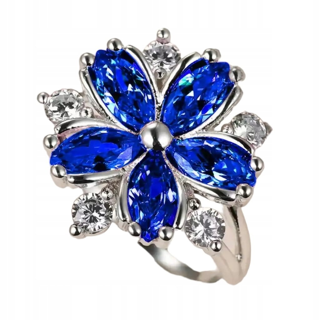 Pierścionek posrebrzany kwiat kwiatek srebrny granatowy prezent 10 nr 79
