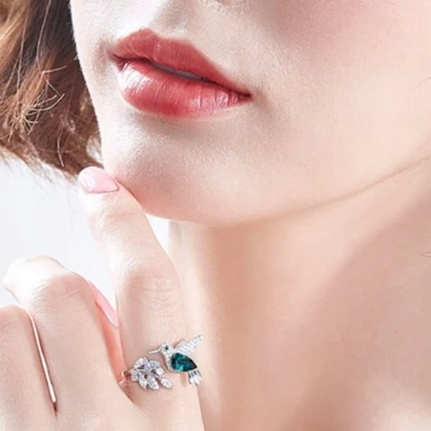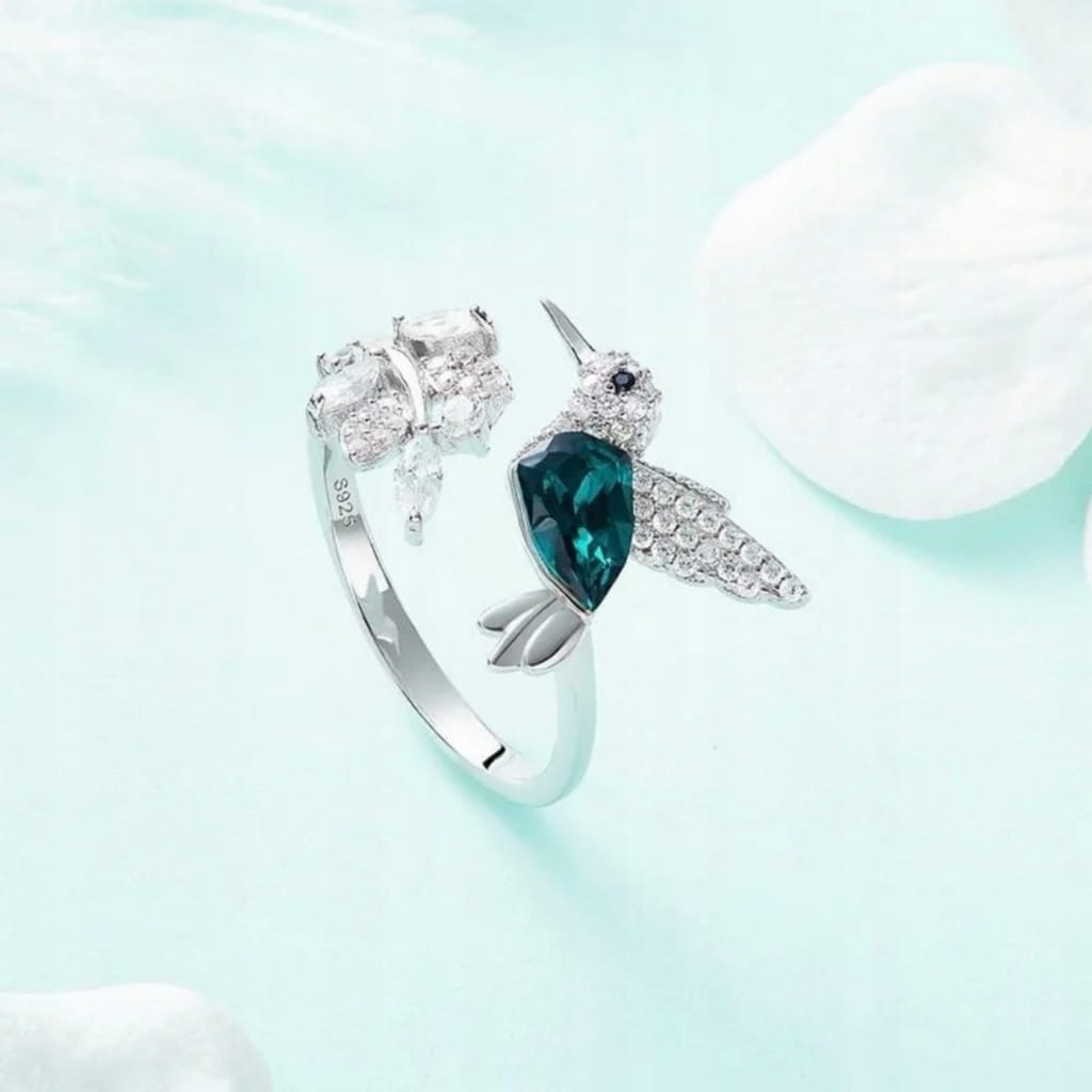 Pierścionek posrebrzany ptak ptaszek koliber uniwersalny prezent 70