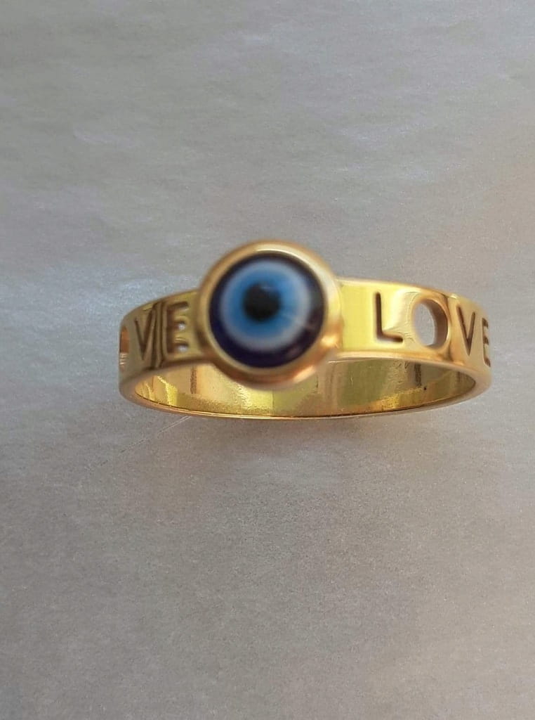 Pierścionek pozłacany evil eye oko proroka napis LOVE 20 nr 54