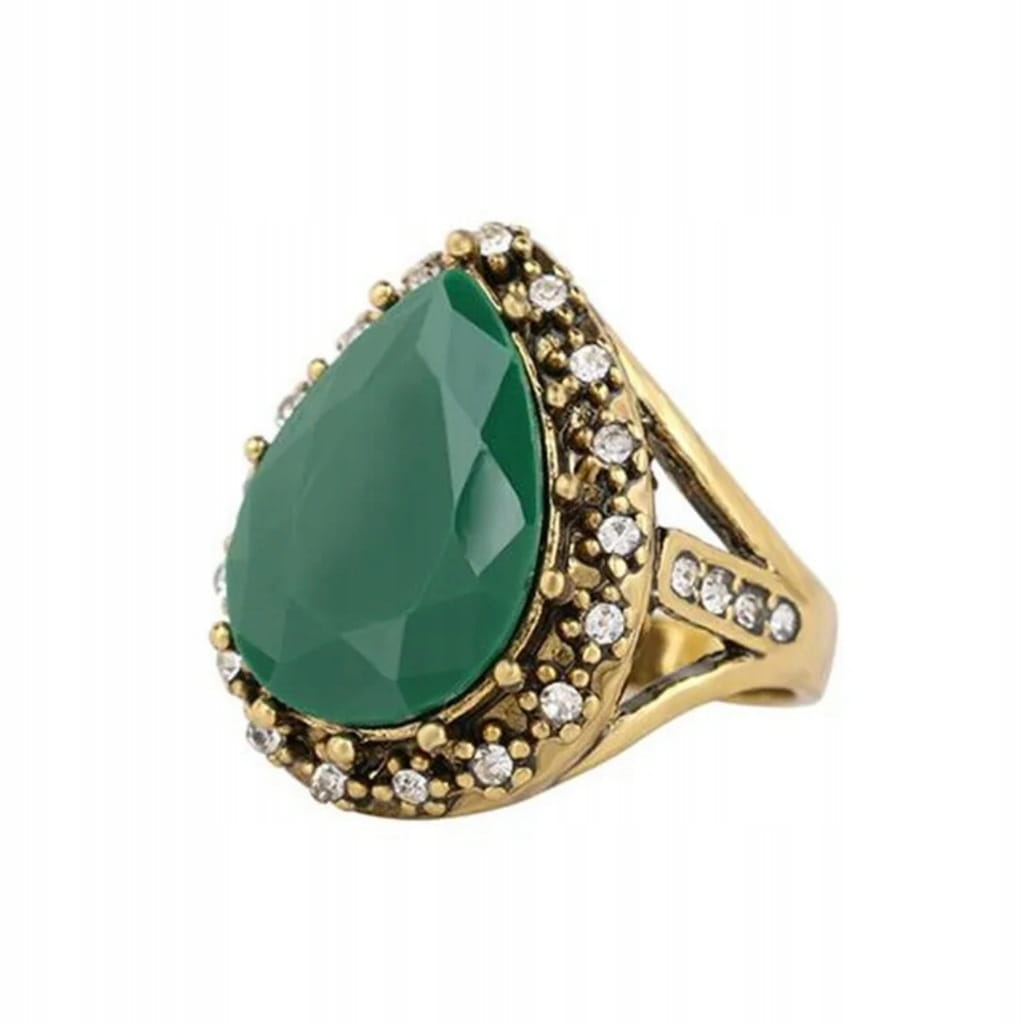 Pierścionek turecki Hurrem Wspaniałe Stulecie pozłacany zielony 8 nr 47