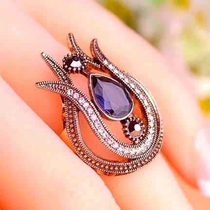 Turecki pierścień Hürrem tulipan ciemnogranatowy