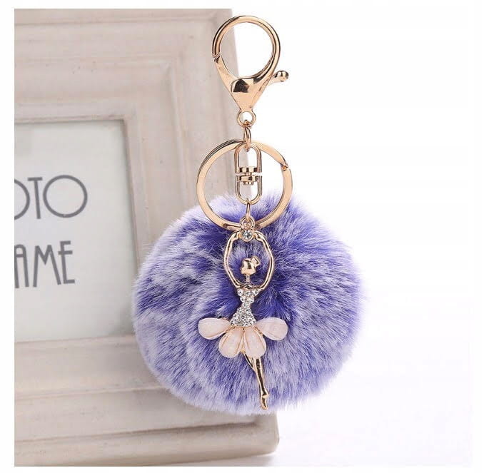 Przedmiotem aukcji jest widoczny na zdjeciu fioletowo-biały pompon - breloczek z tancerką.