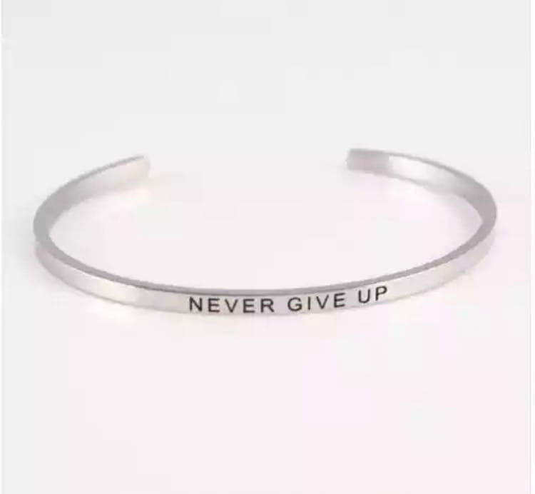 Posrebrzana bransoletka Never give up