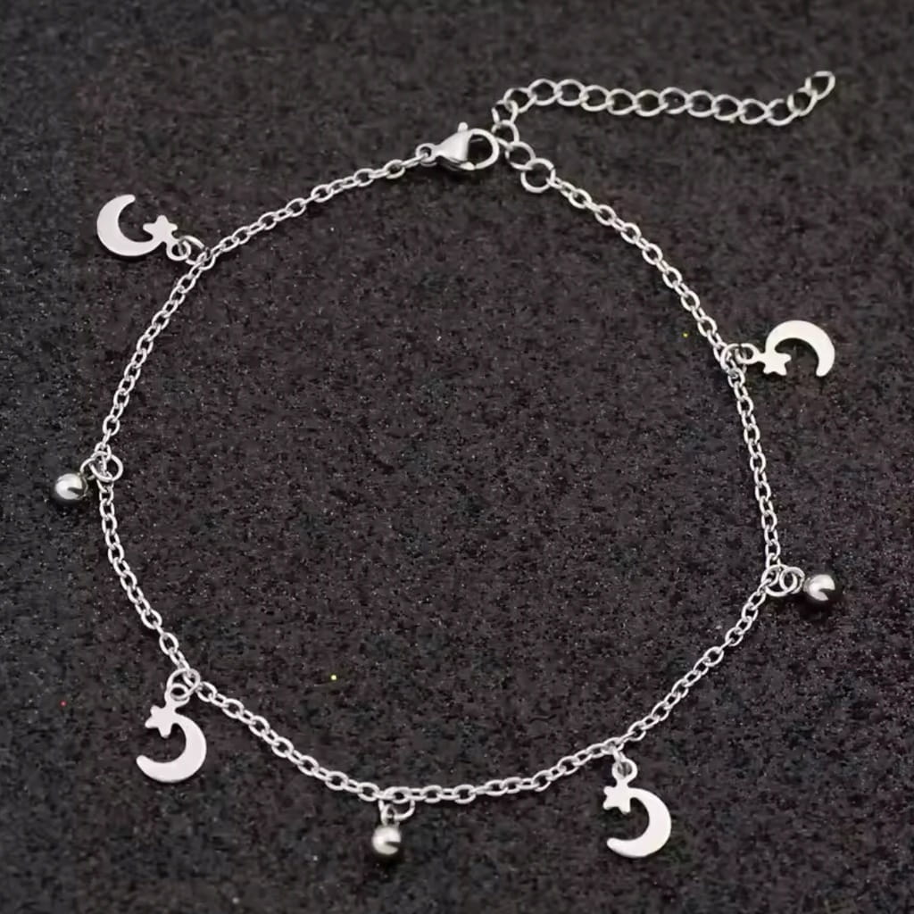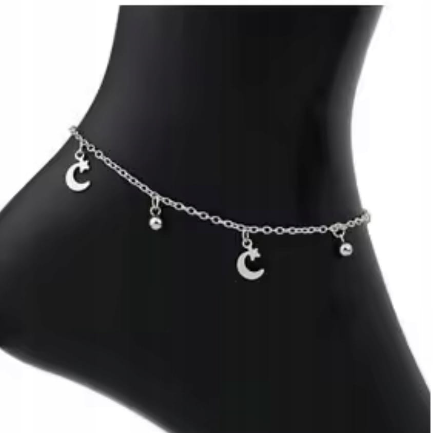 Posrebrzana bransoletka orientalna półksiężyc księżyc gwiazda na nogę 64