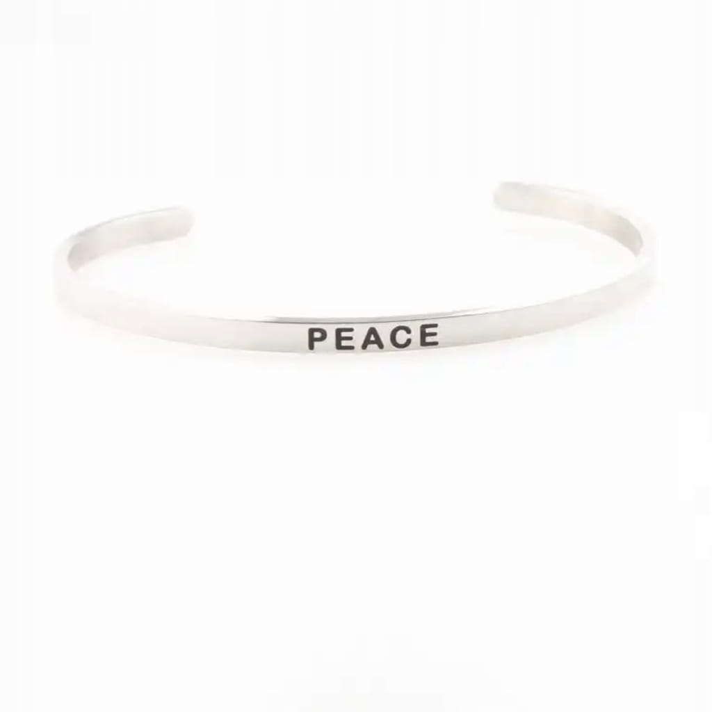 ✅ Posrebrzana bransoletka z napisem PEACE.