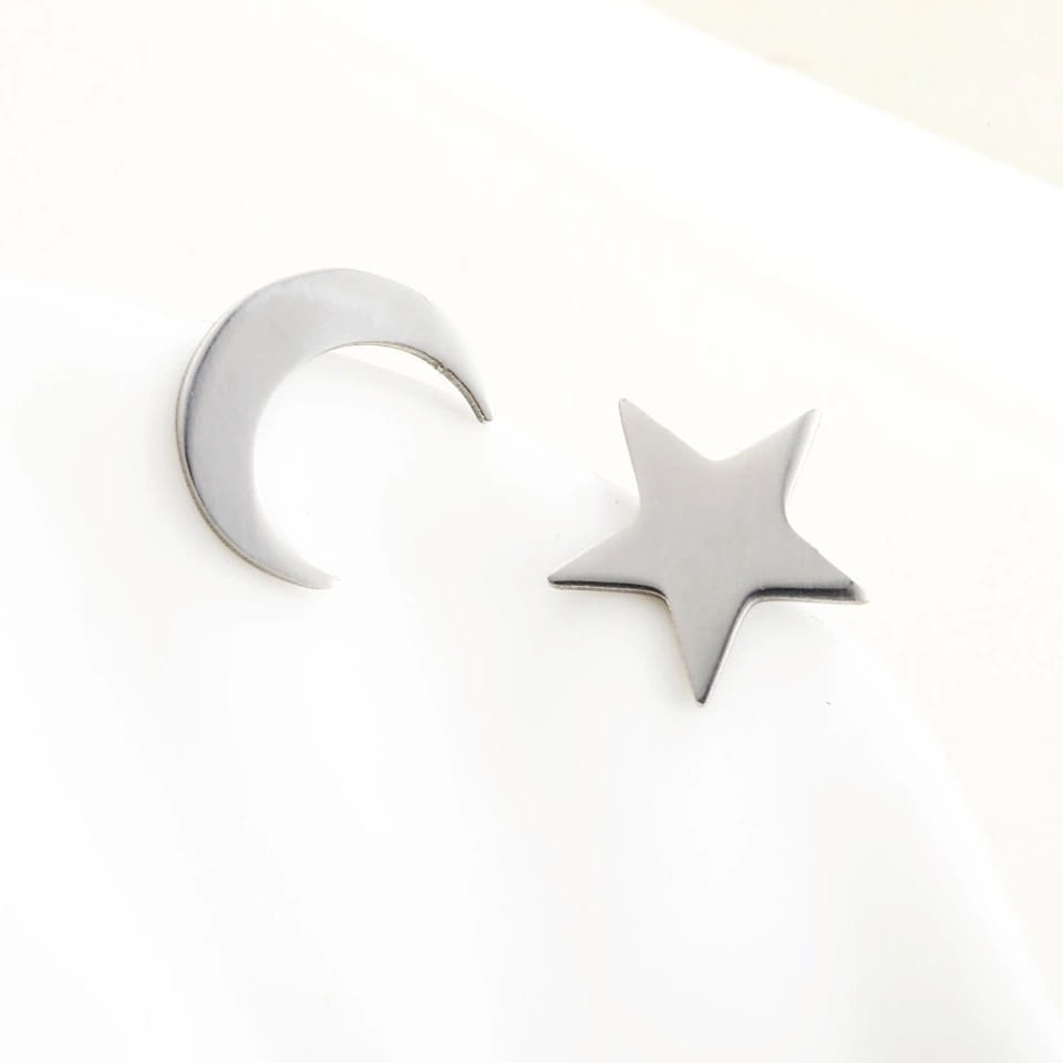Posrebrzane małe kolczyki gwiazda i półksiężyc 69