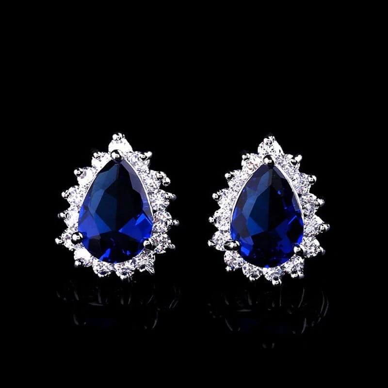 Posrebrzane małe kolczyki szafirowe cyrkoniami 40