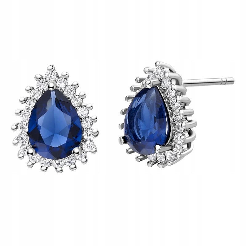Posrebrzane małe kolczyki szafirowe cyrkoniami 84