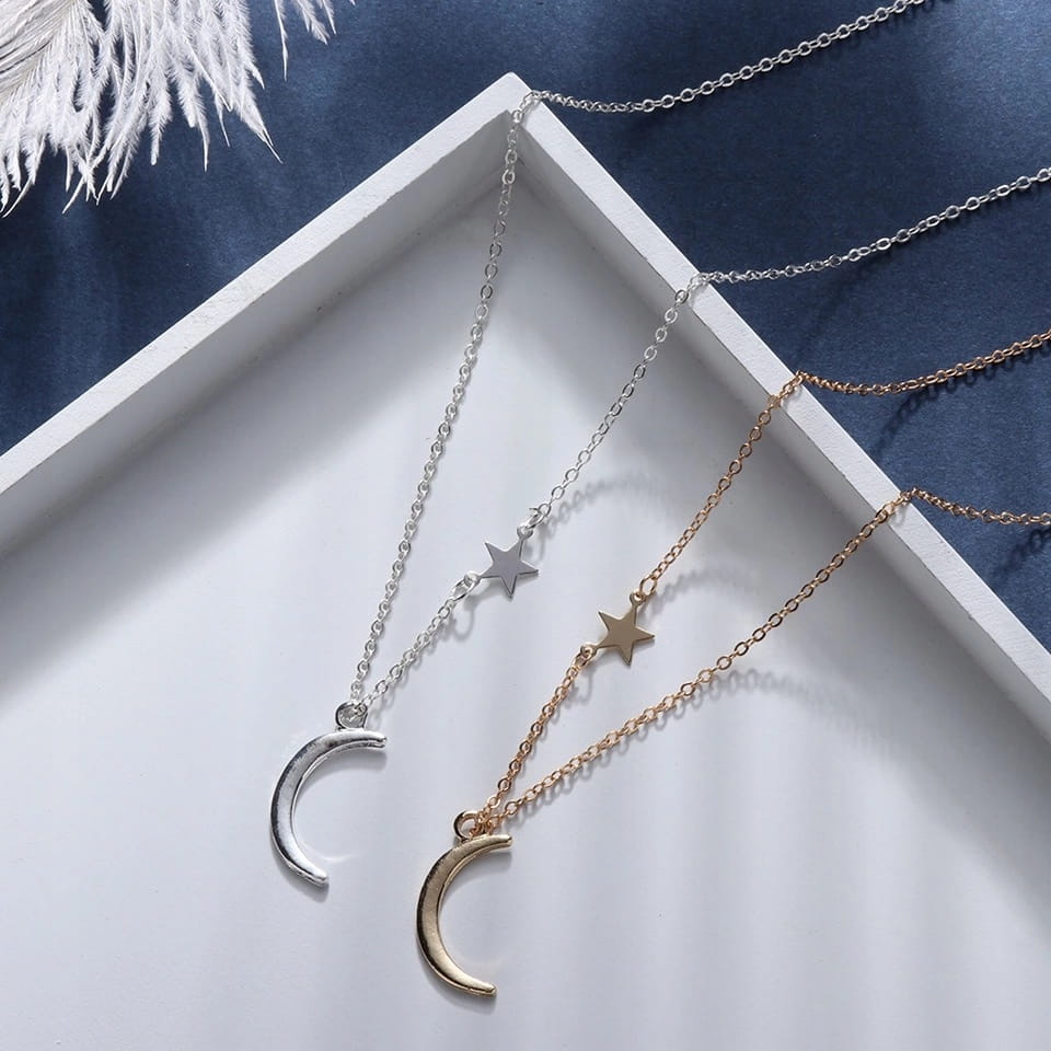 Posrebrzany łańcuszek naszyjnik gwiazda księżyc 37