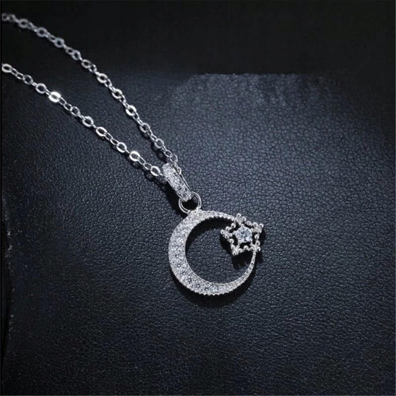 Posrebrzany łańcuszek naszyjnik gwiazda księżyc 78