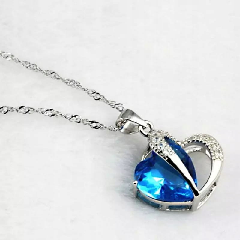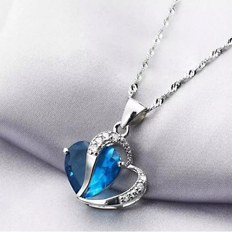 Posrebrzany łańcuszek niebieskie serce 65