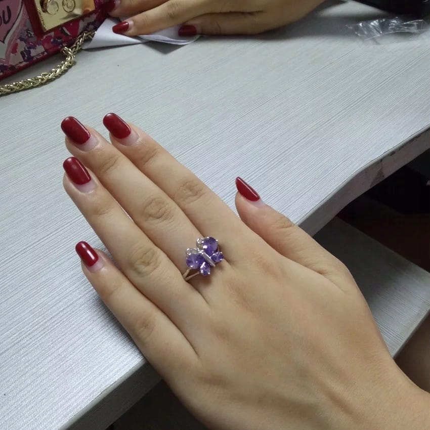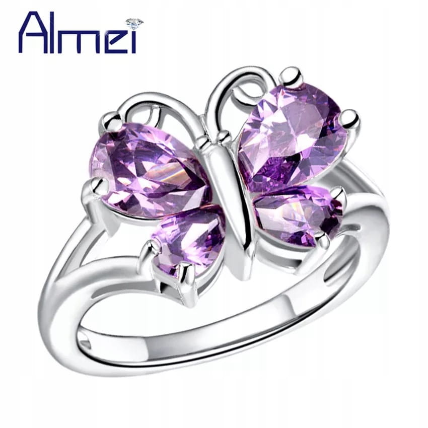 Przedmiotem aukcji jest doskonały na prezent, widoczny na zdjęciu elegancki pierścień damski z fioletowym motylkiem.