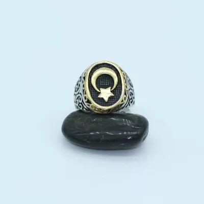 Przedmiotem aukcji jest doskonały na prezent, widoczny na zdjęciu oryginalny, przywieziony z Turcji elegancki posrebrzany męski sygnet z czarnym kamieniem, na którym znajduje się półksiężyc i gwiazda - symbole z flagi Republiki Tureckiej.