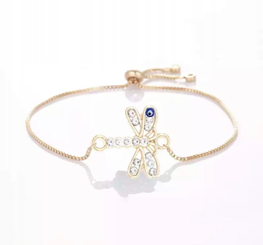✅ Pozłacana turecka bransoletka - ważka z Okiem Proroka.