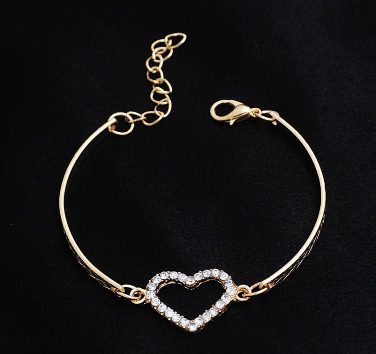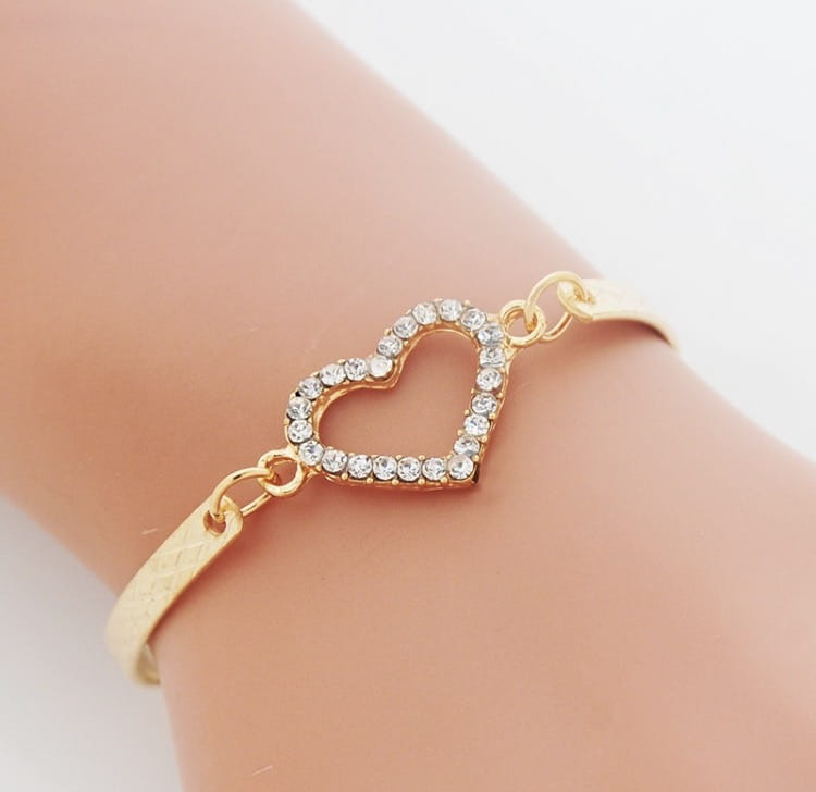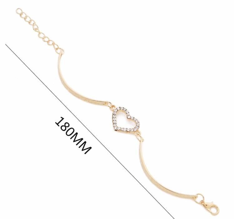 Przedmiotem aukcji jest doskonała na prezent, widoczna na zdjęciu turecka bransoletka z sercem ozdobionym białymi kamykami przypominającymi cyrkonie. Bransoletka jest zapinana i regulowana.
