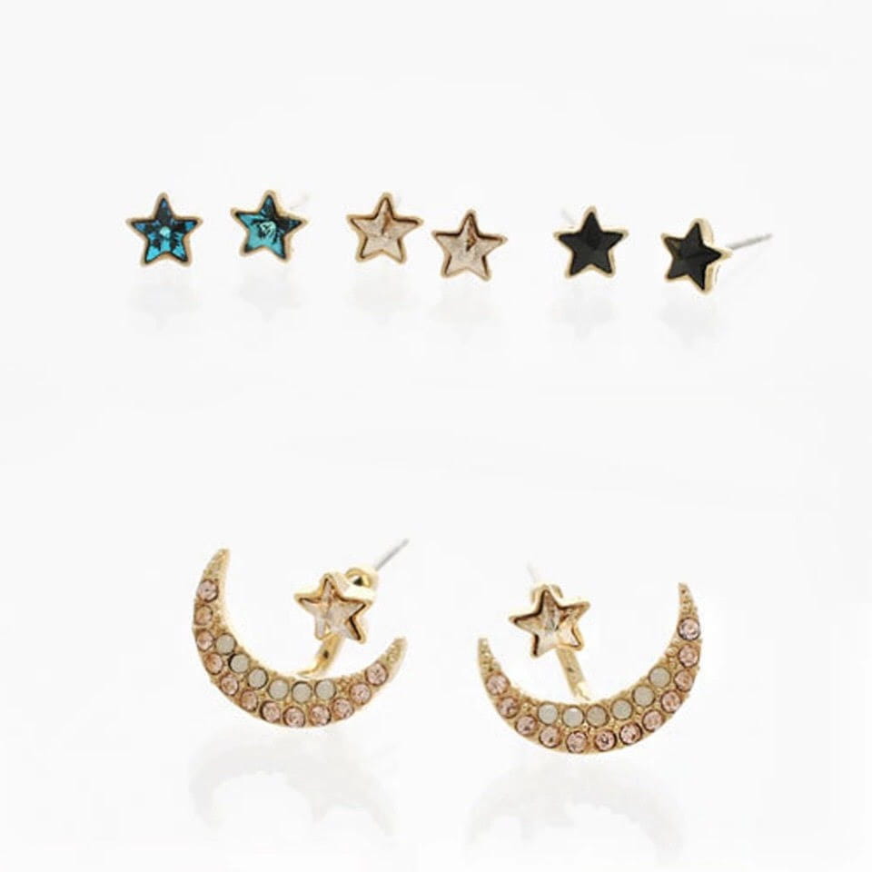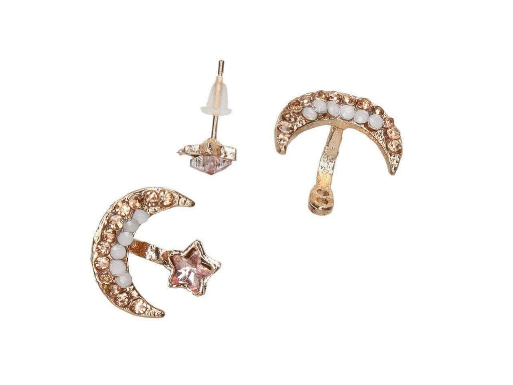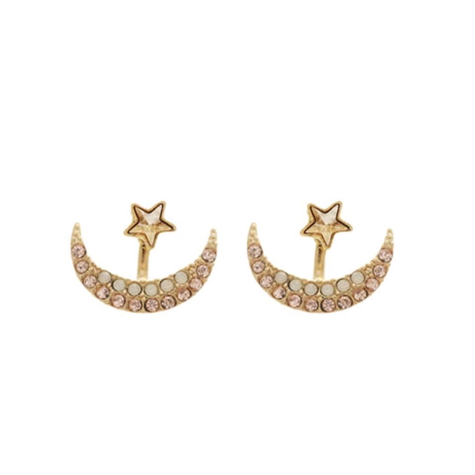 Pozłacane kolczyki gwiazda i półksiężyc różowe 8