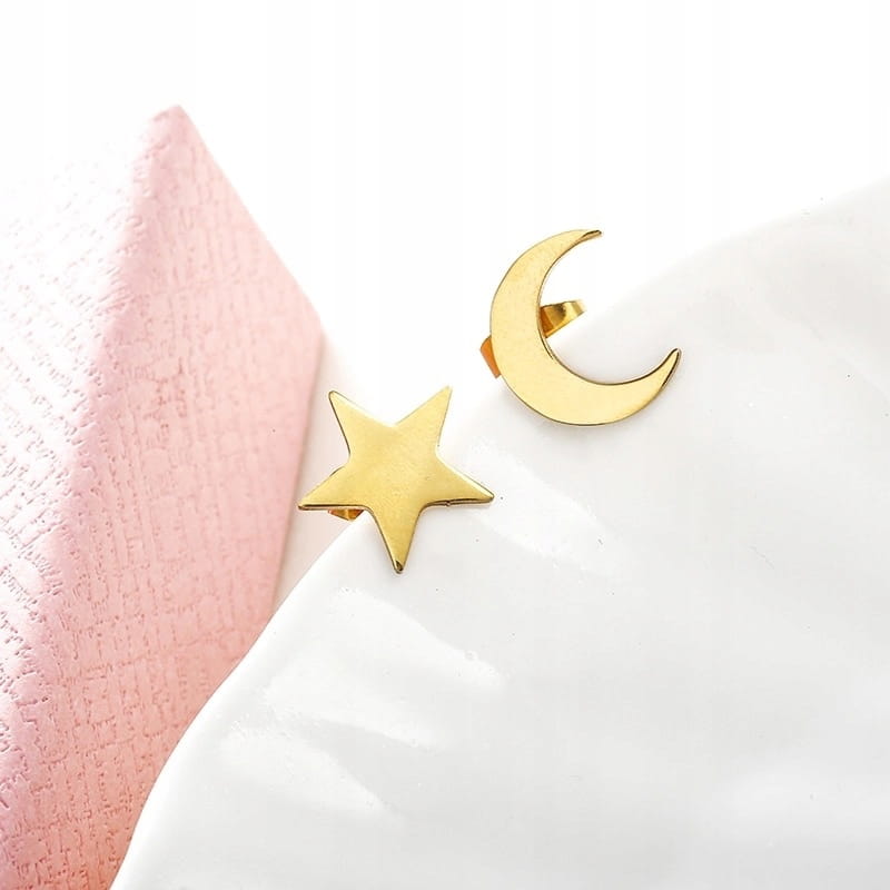 Pozłacane małe kolczyki gwiazda i półksiężyc 70