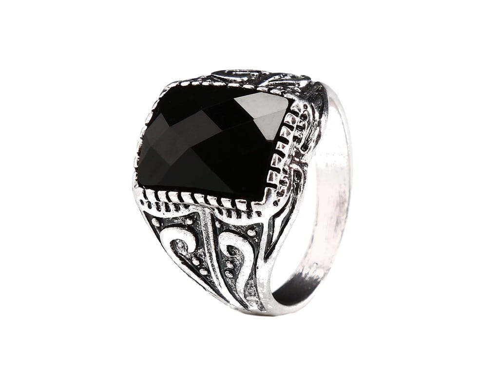 Pozłacany sygnet czarny kamień