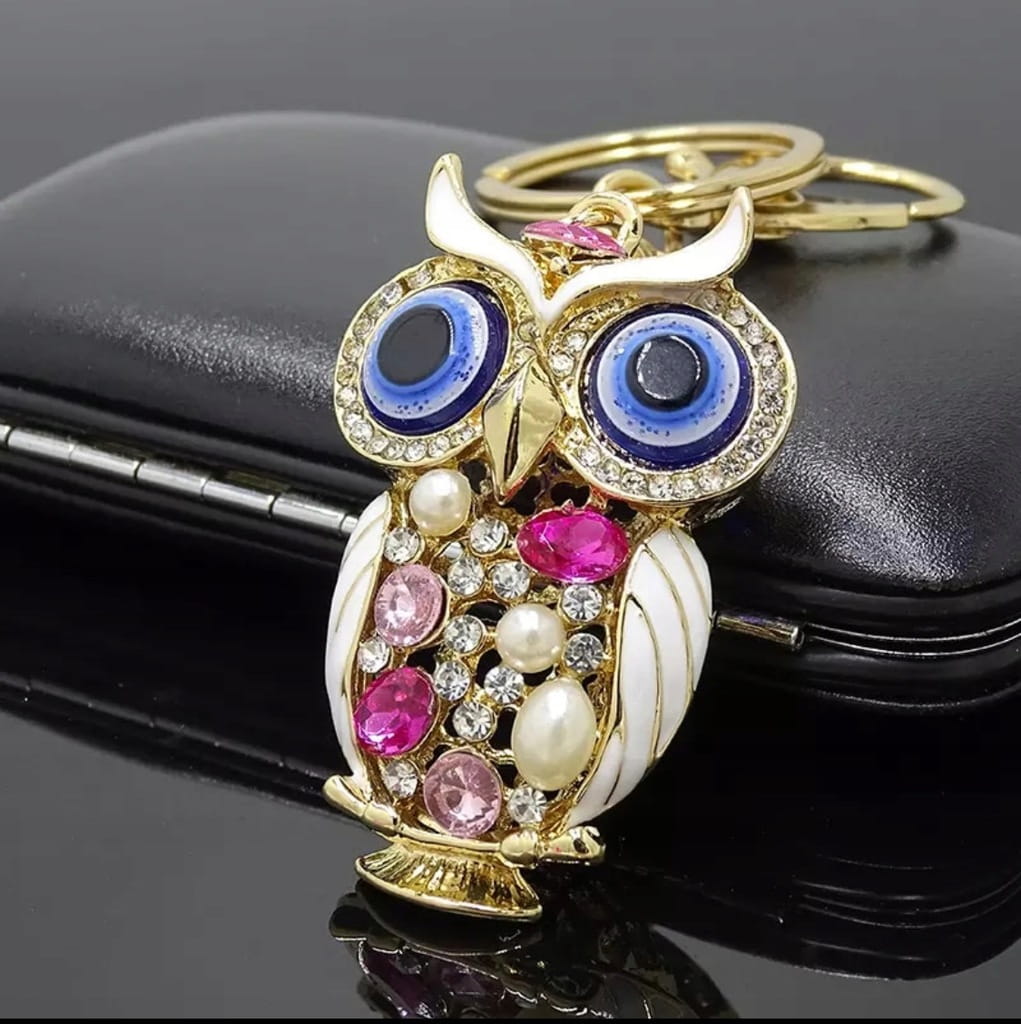 Przedmiotem aukcji jest doskonały na prezent elegancki breloczek sowa w odcieniu różowym. Jeżeli potrzebują Państwo innego koloru, zapraszmay na inne nasze aukcje. Ozdobiony okiem proroka (co widoczne jest na zdjęciu), według tureckiej tradycji ludowej chronić ma przed złym i zazdrosnym spojrzeniem nieprzychylnych nam osób. Można przypiąć go do kluczy lub jako ozdobny dodatek w dowolne inne miejsce, np. do suwaka od torebki. Posiada karabińczyk.