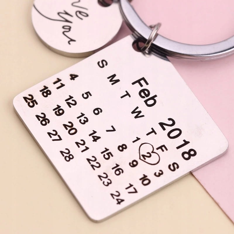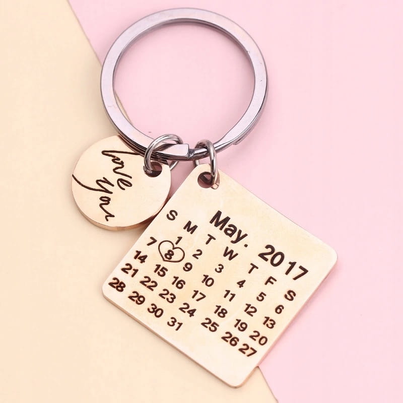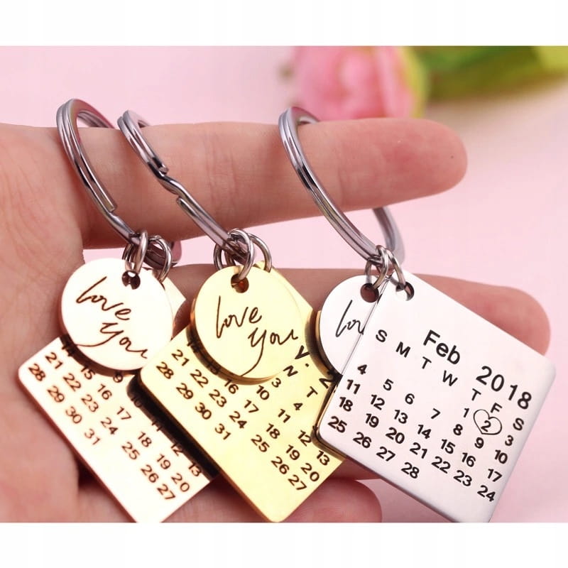 Aukcja dotyczy widocznego na zdjęciu breloczka. W miejsce zaznaczonej daty można umieścić dowolny miesiąc i dzień. Po dokonaniu zakupu należy przesłać do Sprzedającego informacje jaka data ma znaleźć się na breloczku oraz jaki kolor Państwo wybierają (złoty, srebrny czy brązowawo-różowy).