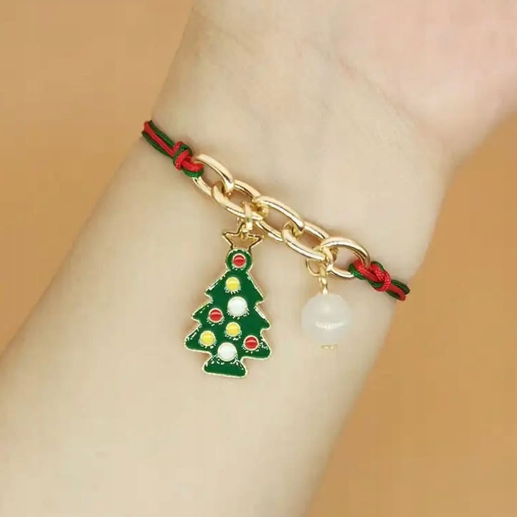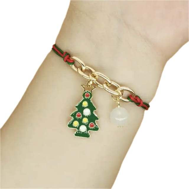 ŚWIĄTECZNA SZNURKOWA BRANSOLETKA Z ZAWIESZKĄ CHOINKA.