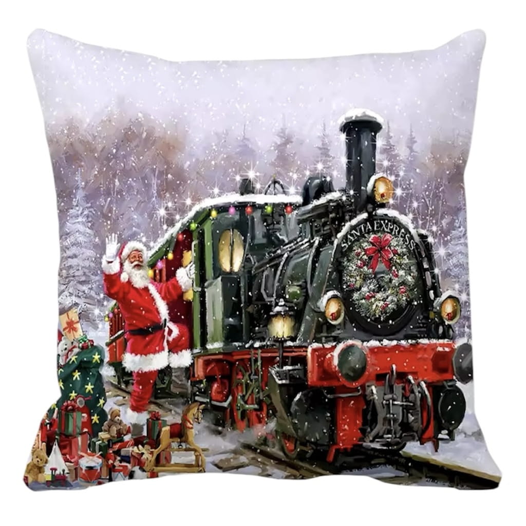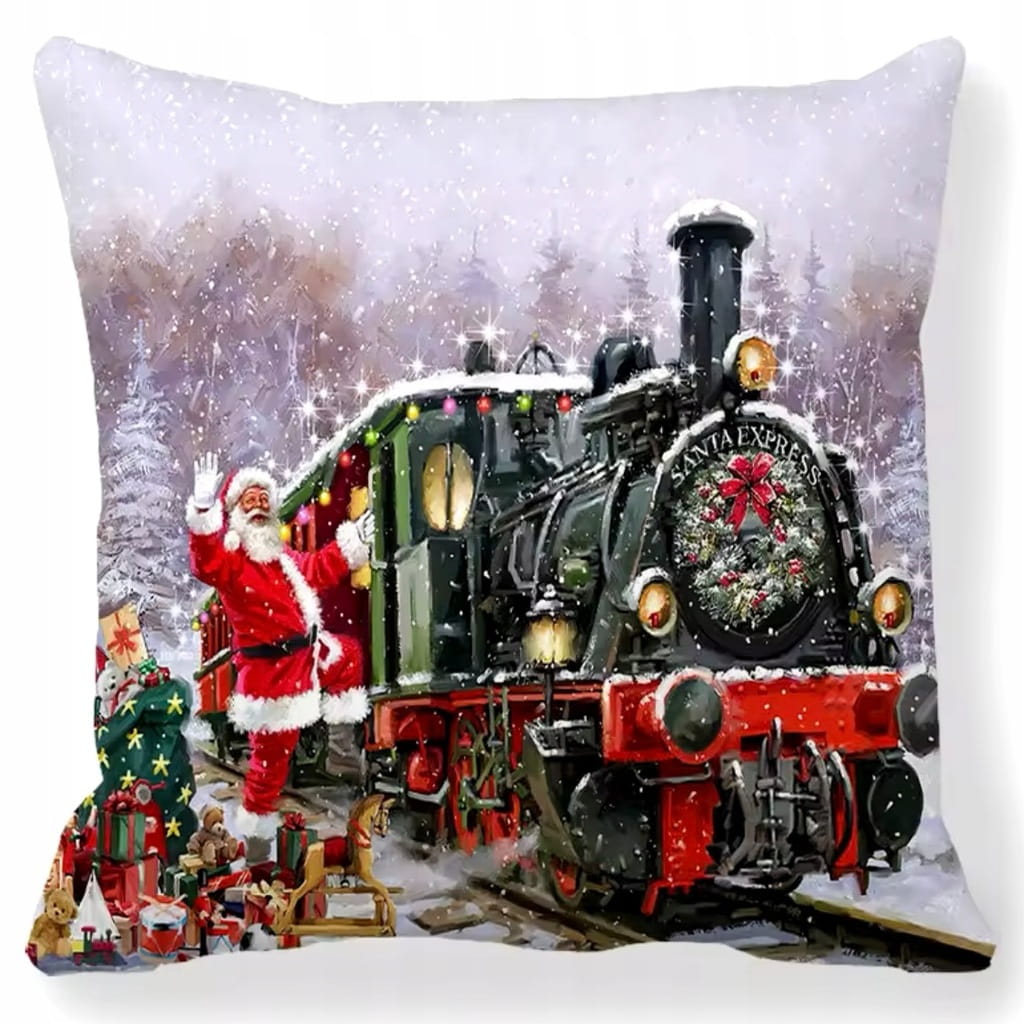 Świąteczna dekoracyjna poszewka na poduszkę Mikołaj pociąg lokomotywa 31