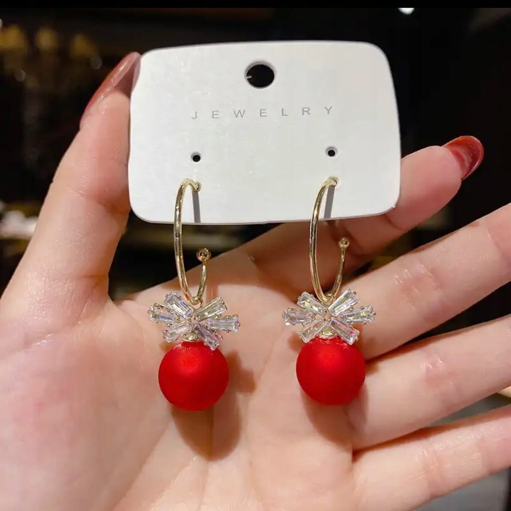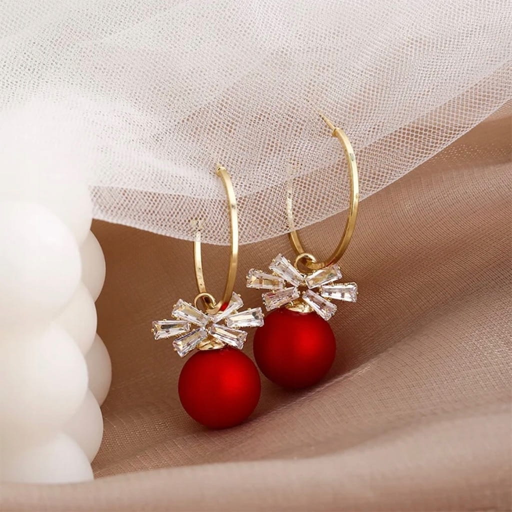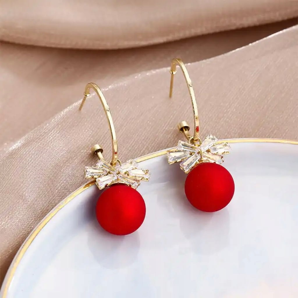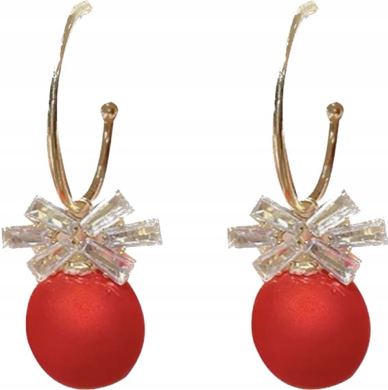 ŚWIĄTECZNE POZŁACANE WISZĄCE KOLCZYKI CZERONE Z KOKARDKĄ.