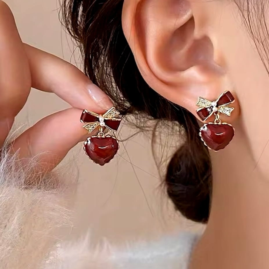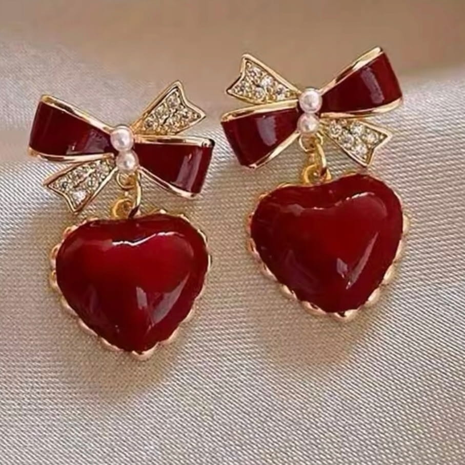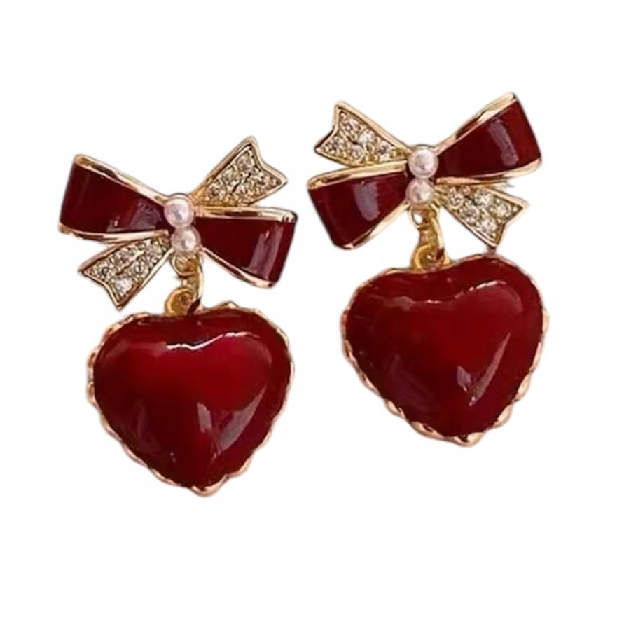 Świąteczne kolczyki wiszące czerwone srce kokarda eleganckie prezent 93