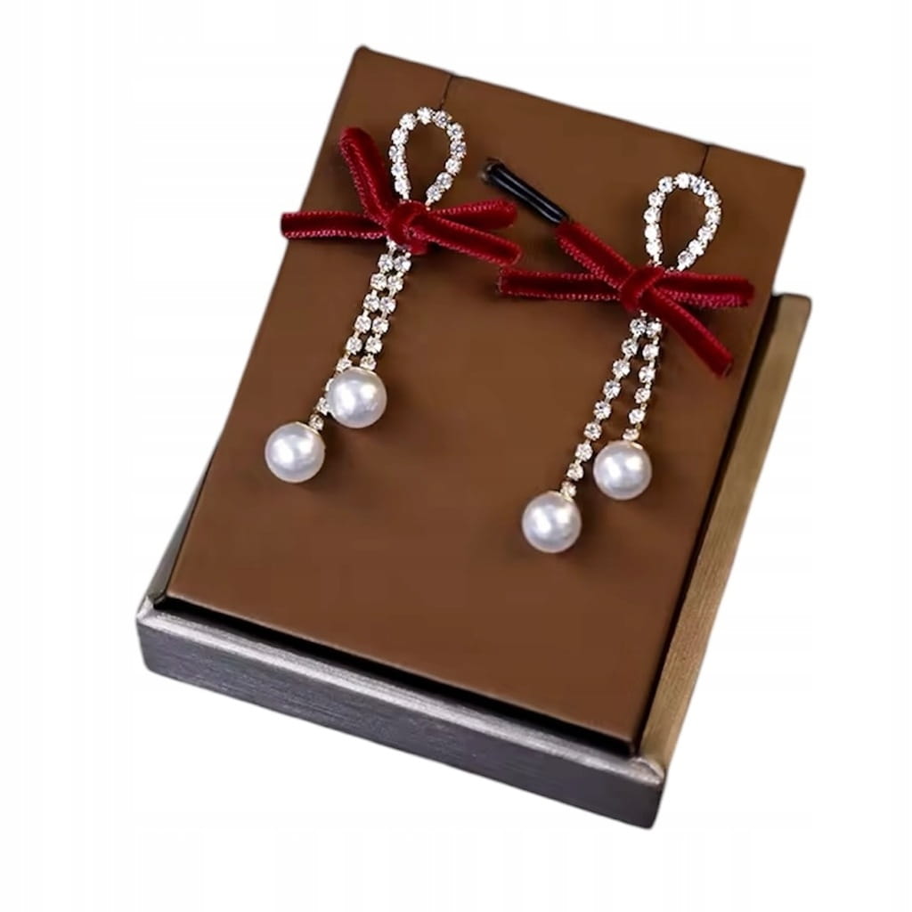 ŚWIĄTECZNE WISZĄCE KOLCZYKI PEREKI Z KOKARDKĄ.