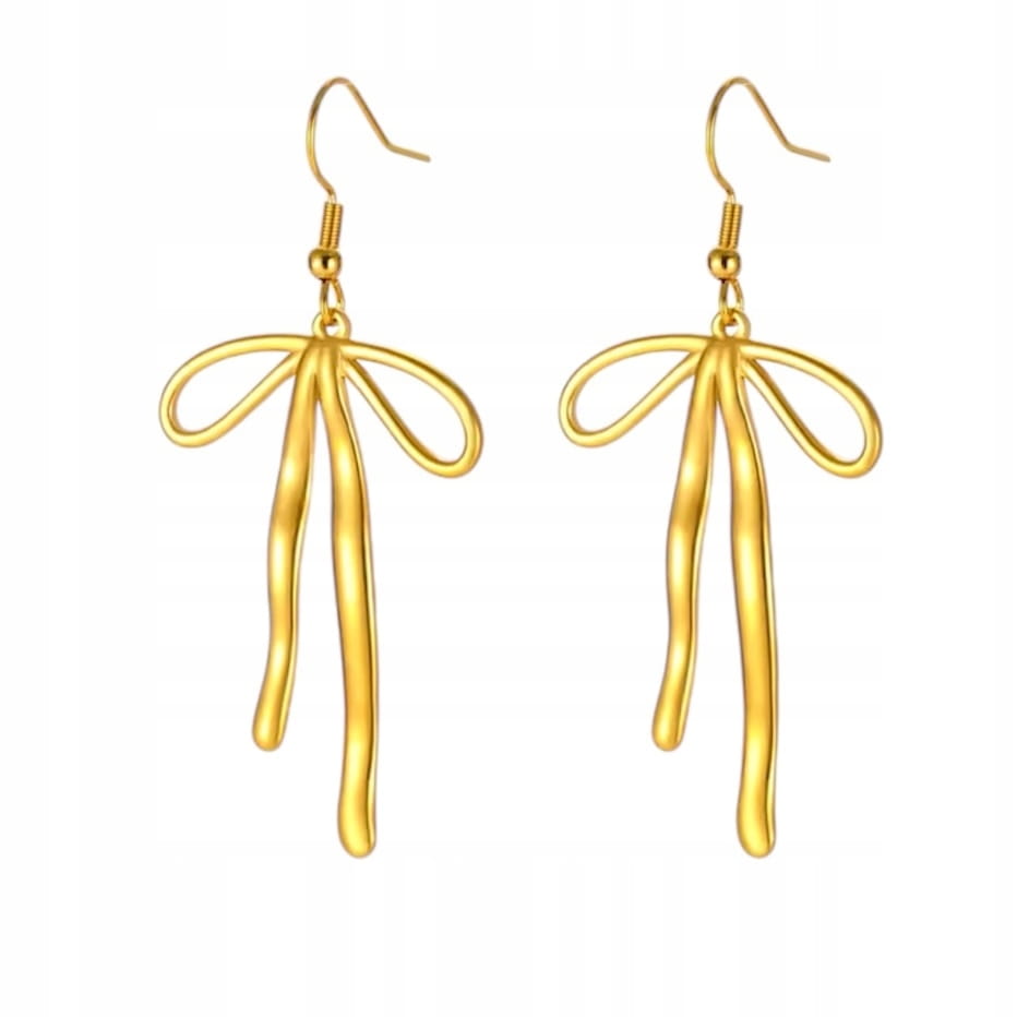 Świąteczne kolczyki wiszące złote kokarda karnawał eleganckie prezent 92