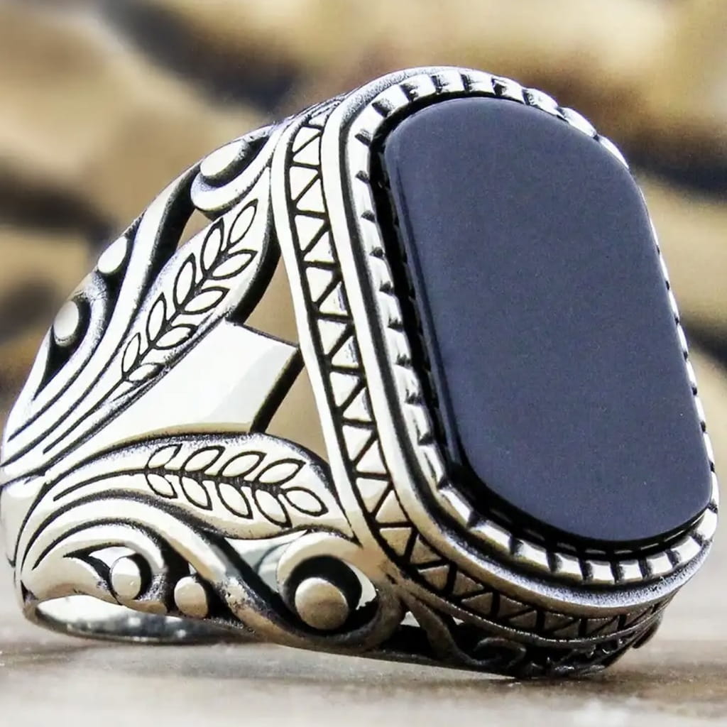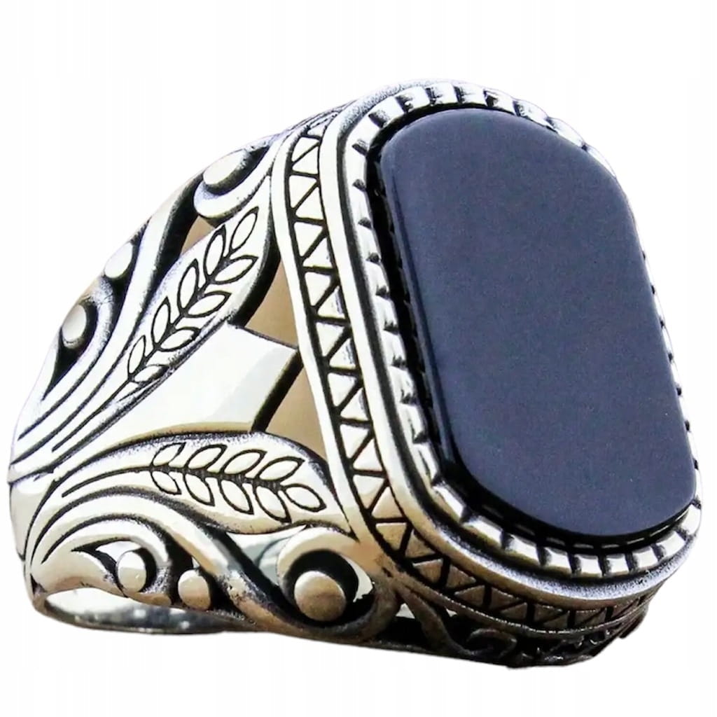 ✅Elegancki sygnet z czarnym kamieniem.