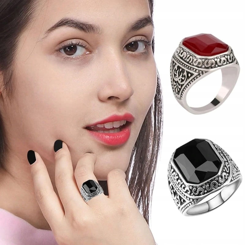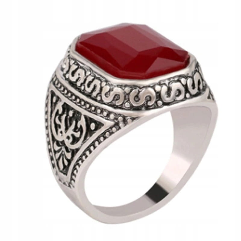 Sygnet pierścień męski turecki posrebrzany czerwony prezent 9 nr 27