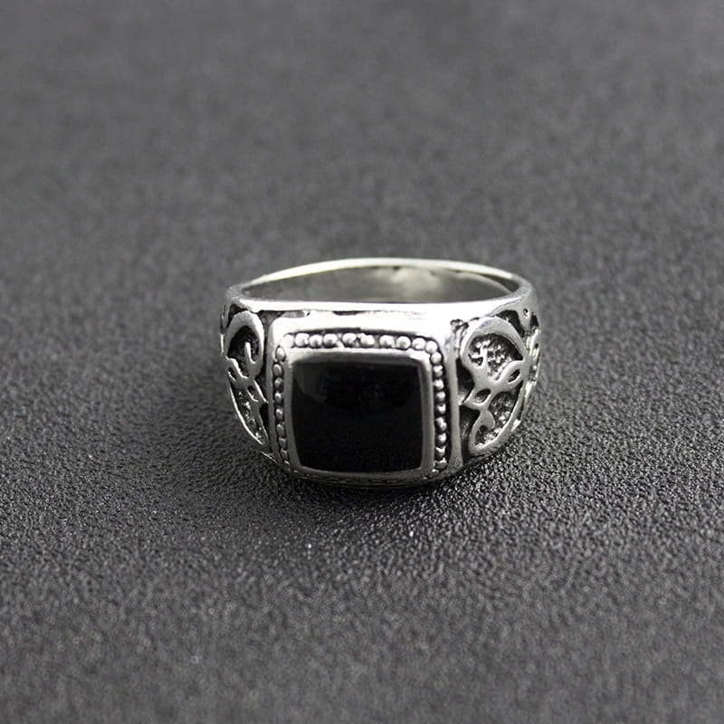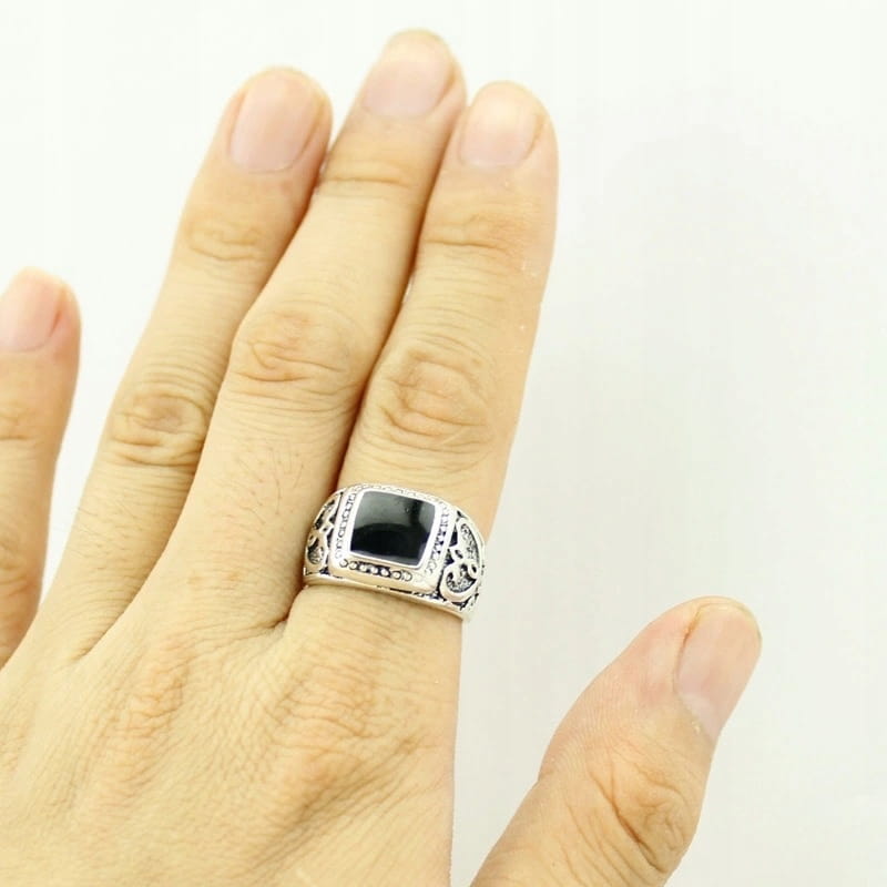 Sygnet pierścień męski turecki posrebrzany z czarnym oczkiem 9 nr 21