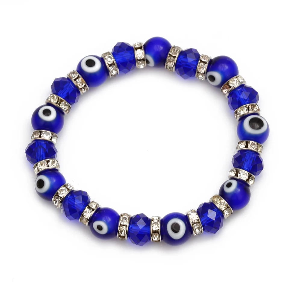 Przedmiotem aukcji jest doskonała na prezent, widoczna na zdjęciu turecka bransoletka z evil eye składająca się z szafirowych koralików, rozciągana - na gumce. Pomiędzy koralikami znajdują się małe kamyczki przypominające cyrkonie. Oko proroka według tradycji chronić ma przed urokiem oraz złym i zazdrosnym spojrzeniem.