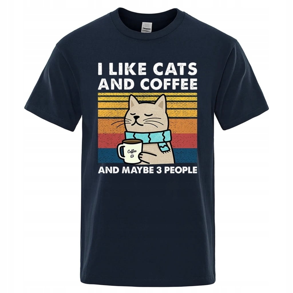 T-shirt z nadrukiem koszulka z zabawnym nadrukiem kot kawa prezent M/L 4