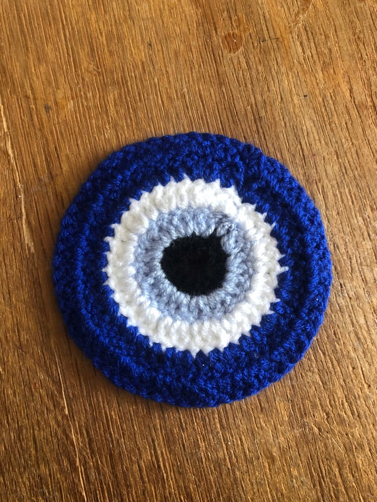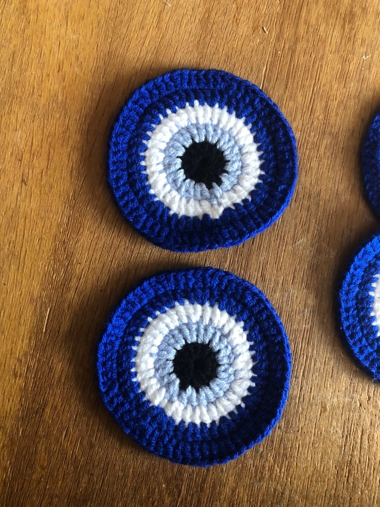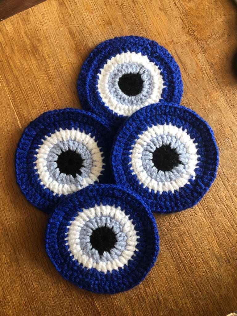 Turecka podstawka z włóczki rękodzieło oko proroka