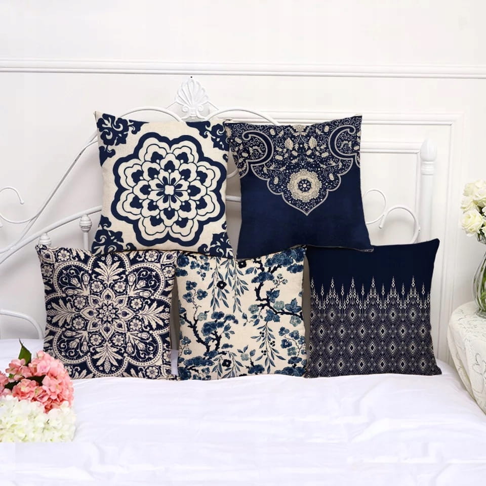 Poszewka na poduszkę z granatowo-fioletowym wzorem